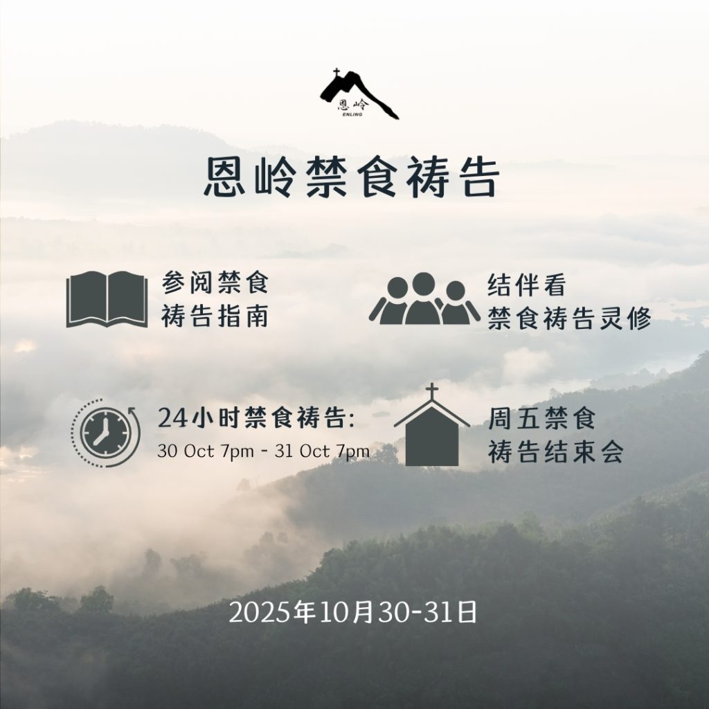 禁食不是自虐的表现,也不是与神交易的手段。禁食的是父神恩赐给我们与他建立关系,领受恩典的途径(means of grace)。就如派博(John Piper)所说的,我们之所以对父神的渴望不足,那是因为我们被世界所充满。因此,禁食的其中一个意义是我们借着不摄取那些好的,以致我们会渴望那位最好的。因此,恩岭邀请大家从10月30日7pm-31日7pm一同进行24hr禁食祷告,一同经历与天父的亲密。